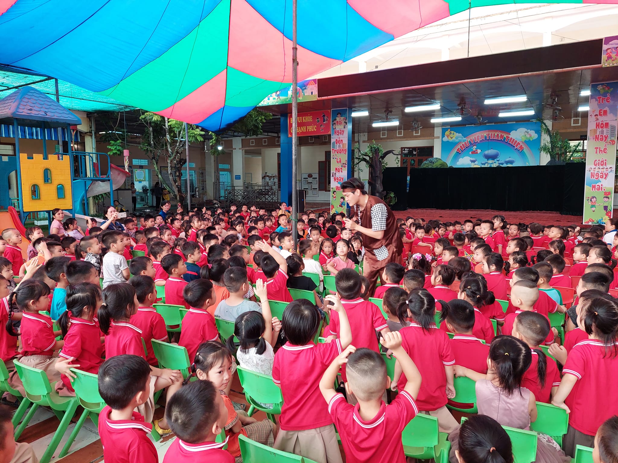 do các cô bác nghệ sĩ đoàn NT múa rối Hải Phòng biểu diễn. Trên mỗi gương mặt, ánh mắt của các con ai cũng thể hiện sự háo hức