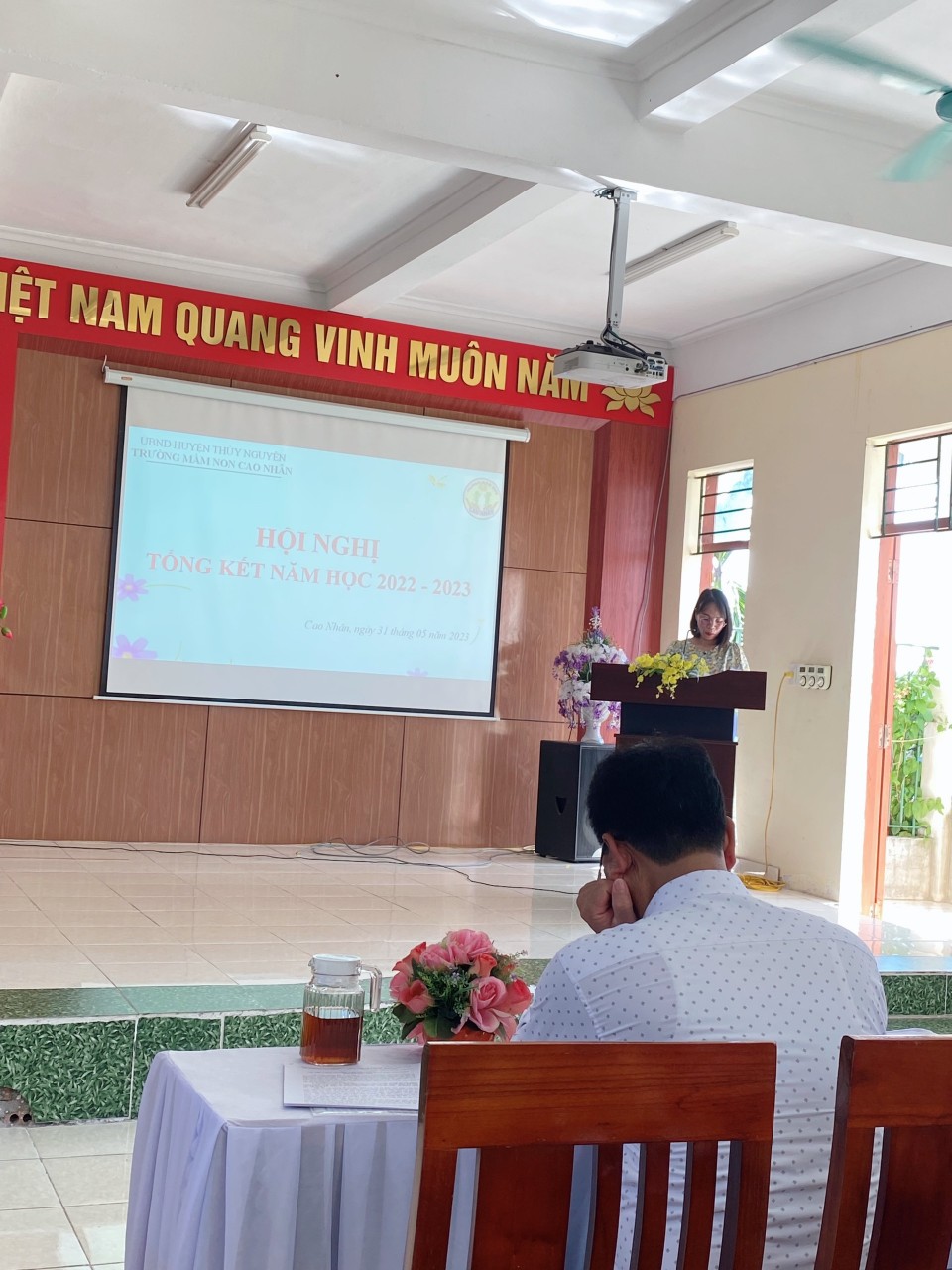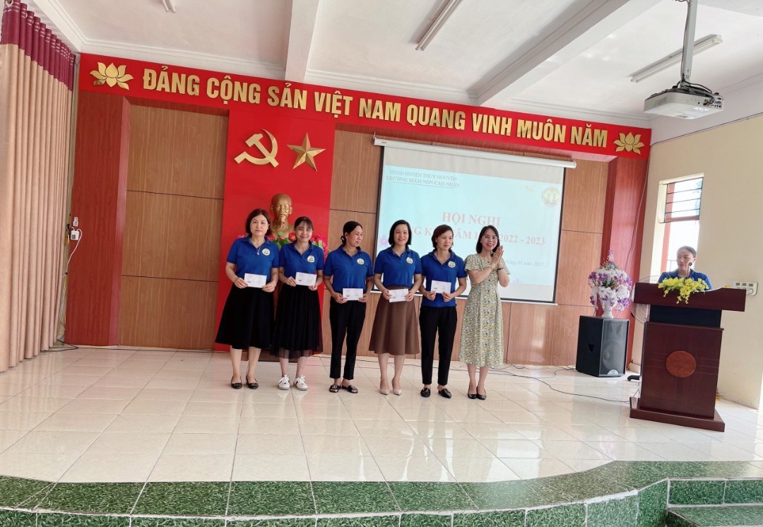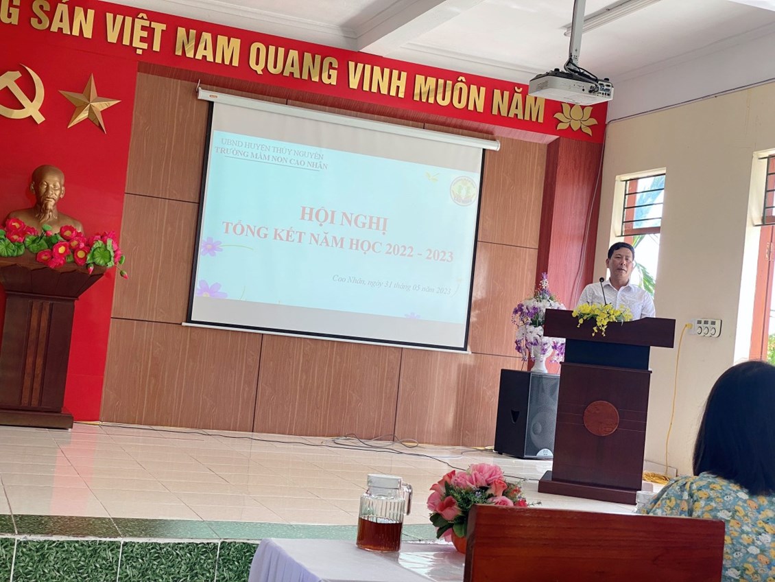 Thực hiện chương trình công tác Tháng 5/2023. Sáng nay, trường MN Cao Nhân đã tổ chức Hội nghị tổng kết năm học nhằm đánh giá kết quả thực hiện nhiệm vụ năm học 2022 - 2023, triển khai kế hoạch hoạt động Hè 2023; Biểu dương, khen thưởng các cá nhân, tập thể có thành tích xuất sắc trong năm học đồng thời nhận xét đánh giá tập thể lãnh đạo quản lý nhà trường.
