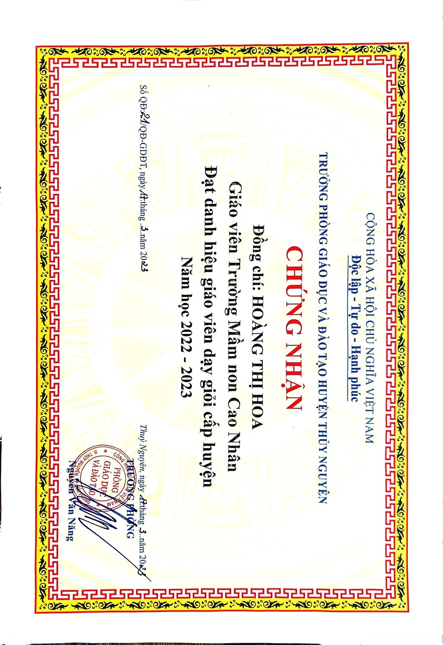 - Cô giáo Hoàng Thị Hoa ( 5T)